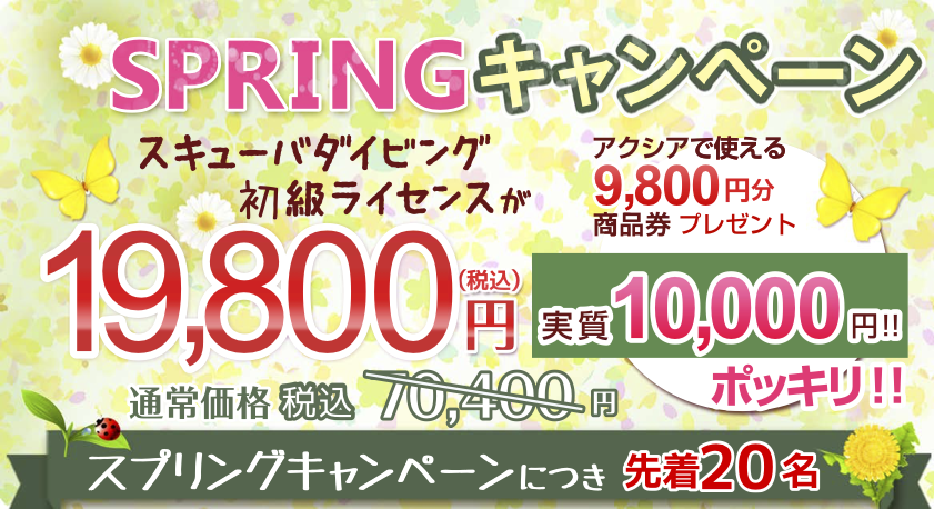 途中で追加料金が発生することはございません。※料金に含まれるもの 実習講習費・教材費・施設利用料・器材レンタル代・ライセンス申請代金